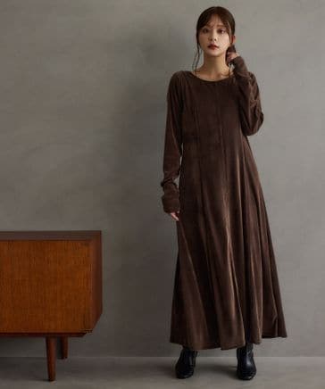 【沖田愛加さんコラボ/選べる着丈】ベロアキリカエラインワンピース
