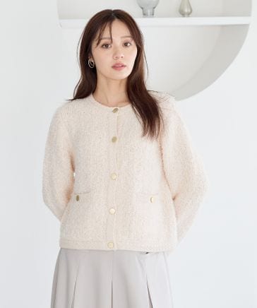 リボンヤーンクルーカーディガン