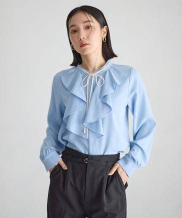 フロントフリルリボンブラウス