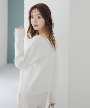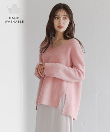 【洗える/新色入荷】CNラクーンコンVネックニット