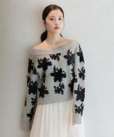 フラワージャガードオフショルニット