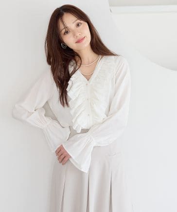 フロントフリルリボンブラウス