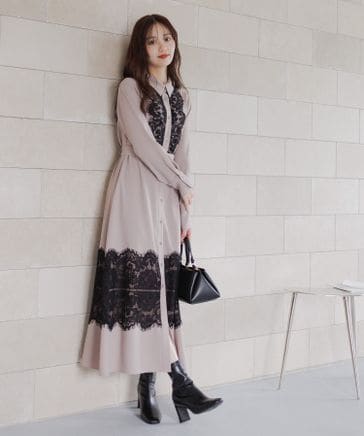 【選べる着丈】フロントレースキリカエワンピース
