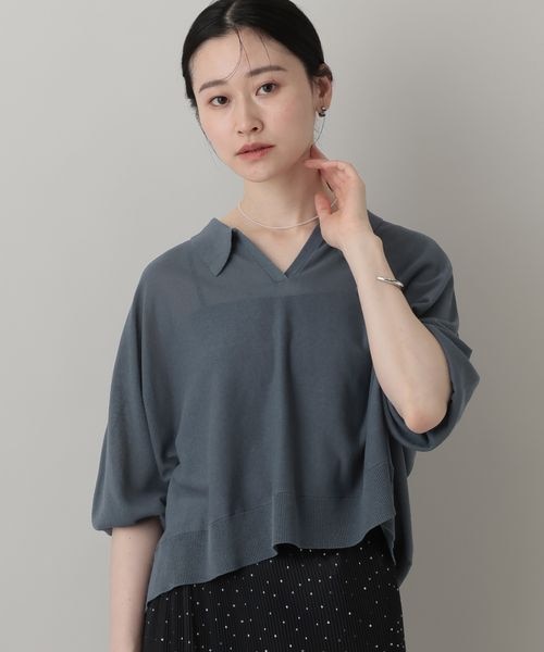 【多機能】 シアーポロニットプルオーバー_5分袖/WEB先行予約