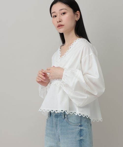 スカラップレースブラウス