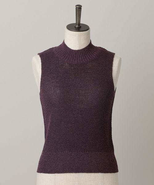 リネンコンハイネックニットノースリーブ/WEB先行予約
