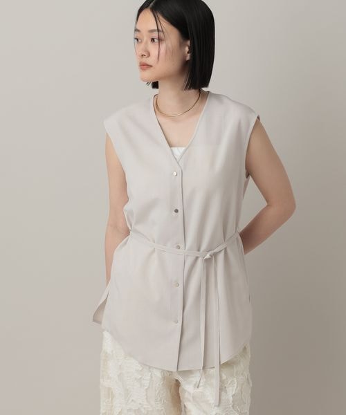 【シワになりくい・接触冷感】リネンライクVネックノースリーブシャツ/WEB先行予約