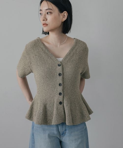 【即完売シリーズ】ブークレペプラムカーディガン_5分袖/WEB先行予約