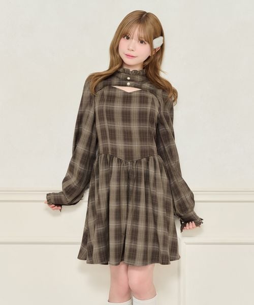 フロントオープンフリルネックワンピース