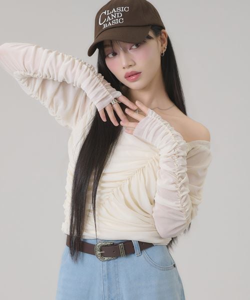 【apresjour mignon】2WAYシャーリングトップス