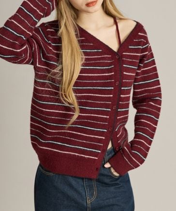 【apres jour clair】シャギーレースアップニットカーディガン