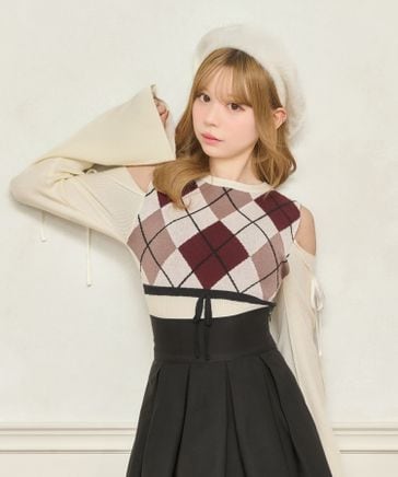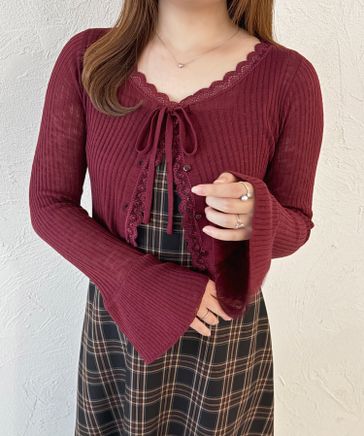 【apresjour mignon】タイ付きシャギーオフショルニット