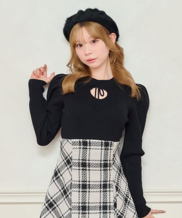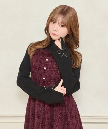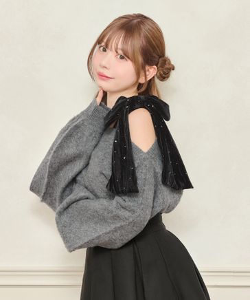 【apresjour mignon】タイ付きドロストオフショルロングトップス