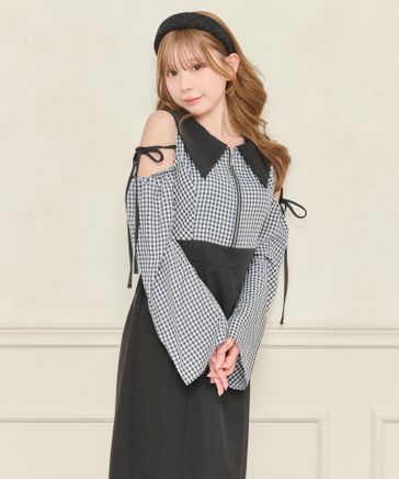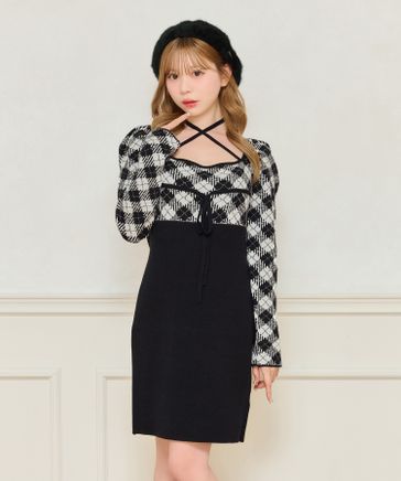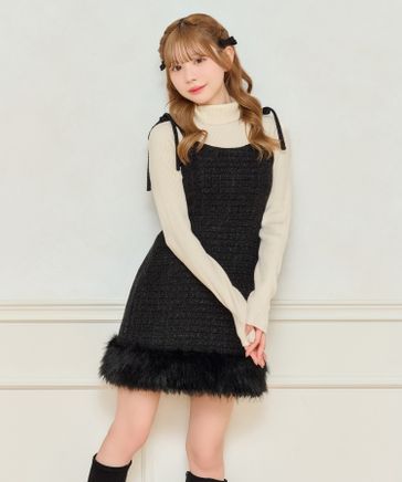 【ペチコート付き】肩リボンツイードミニキャミワンピース