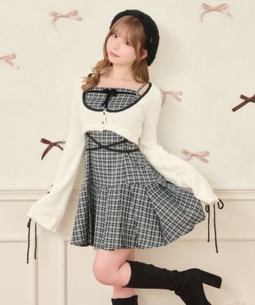 チェックパフスリーブワンピース