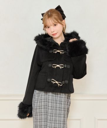 【apresjour mignon】ヴィンテージフェイクレザーリボン中綿ブルゾン