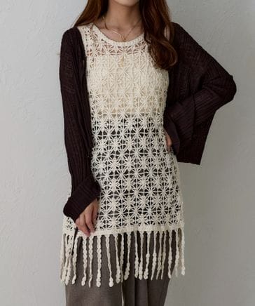 【apres jour clair】クロシェフリンジベスト