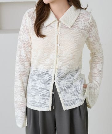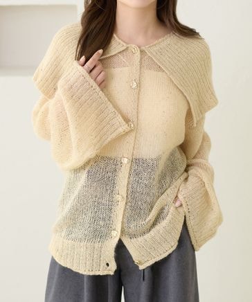 【apres jour clair】透かし編みポロニットカーディガン