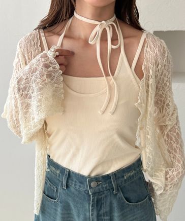 【apres jour clair】カップ付きアメスリレイヤードチョーカーキャミソール