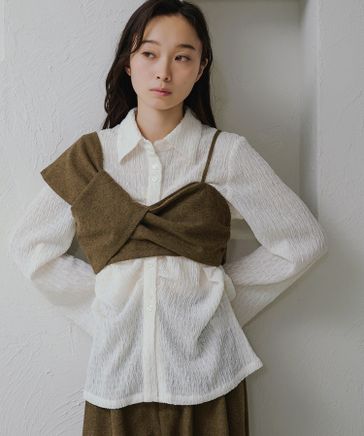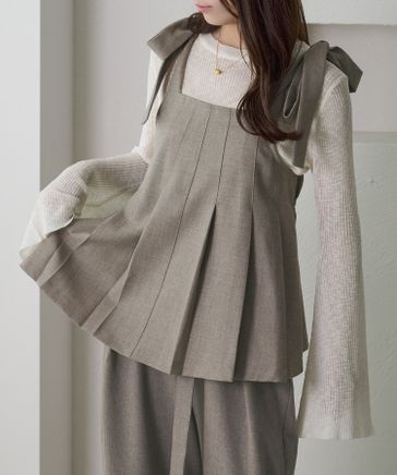 【apres jour clair】【セットアップ可能】肩リボンプリーツビスチェ