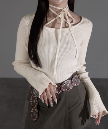 【apresjour mignon】タイ付きシャギーオフショルニット