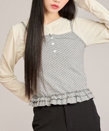 【apresjour mignon】シャツレイヤードドレープトップス