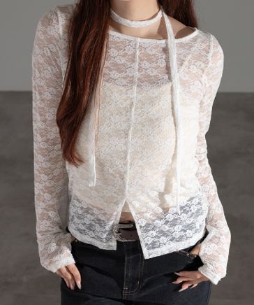 【apresjour mignon】タイ付きドロストオフショルロングトップス