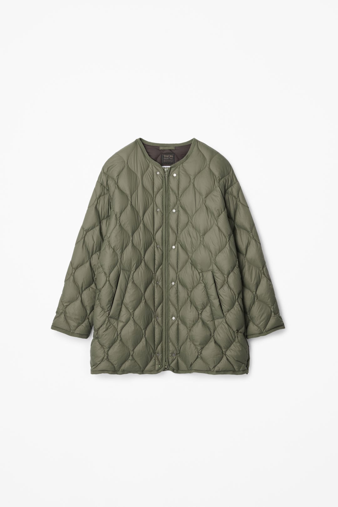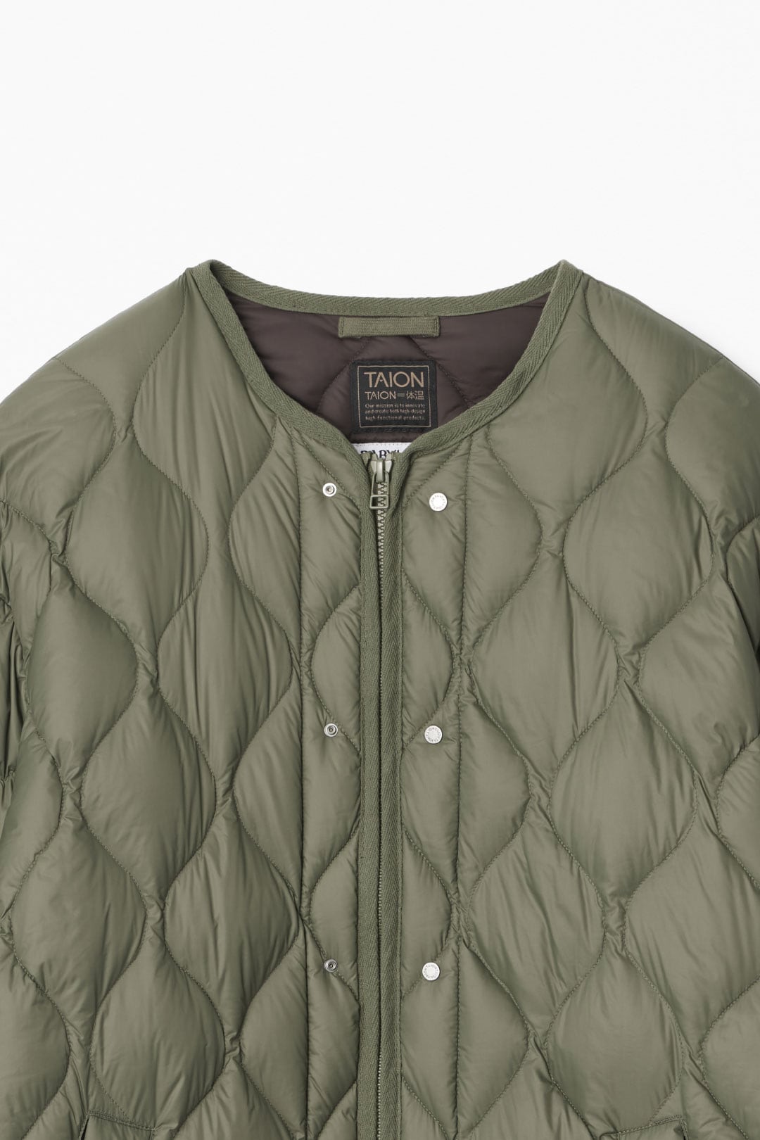 高品質・高機能なTAIONのインナーダウンとBABYLONEの特別コラボが実現!SOFT SHELLという柔らかくて着心地のいい生地を使用した、M65(ミリタリージャケット)のライナー風のダウンジャケット。オーバーサイズに仕上げた事でほどよくルーズに着こなせます。小さめで馴染みの良い金属ボタン・表裏配色などバイヤーのこだわりが詰まっており、両脇にファスナースリットがあることで可動域が広がって動きやすいのはもちろん、レイヤードを楽しんでいただく事も可能です。