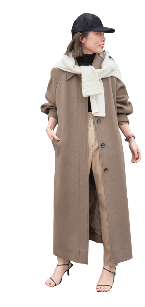 ベーシックで長く愛用出来るノーカラーコートやトレンド感のあるショートコート・カジュアルに着回せる