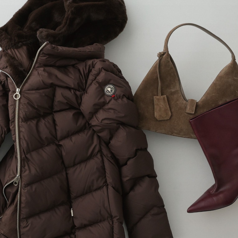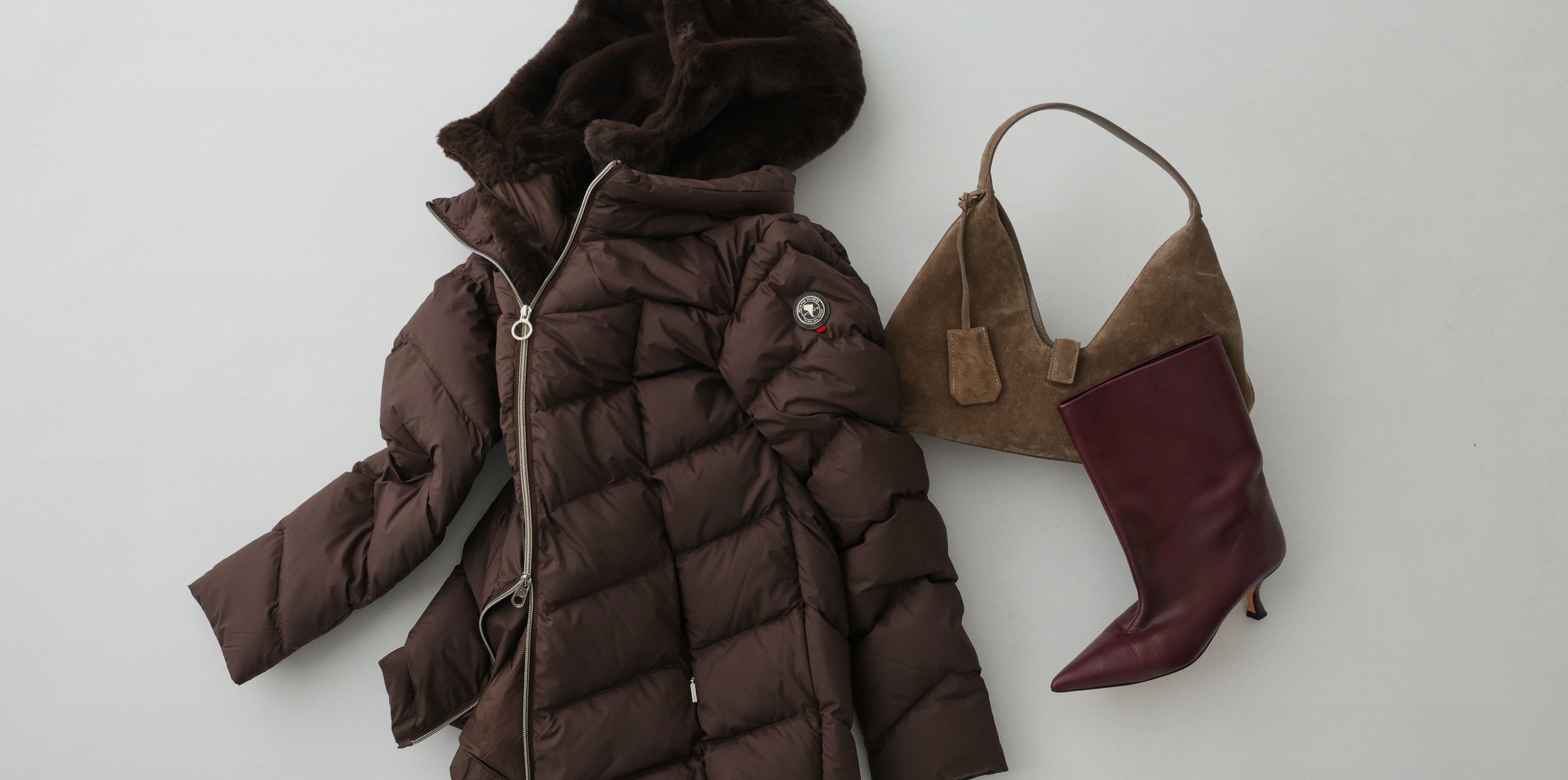 芯のある女性らしさを演出する「BROWN」トレンドながら、どんなアイテムとも合うベーシックさを兼ね備えた頼れるカラーです。思い切って、今年はワントーンでまとめてみて。ポイントで、ブラウンが入ったダウンもおすすめです