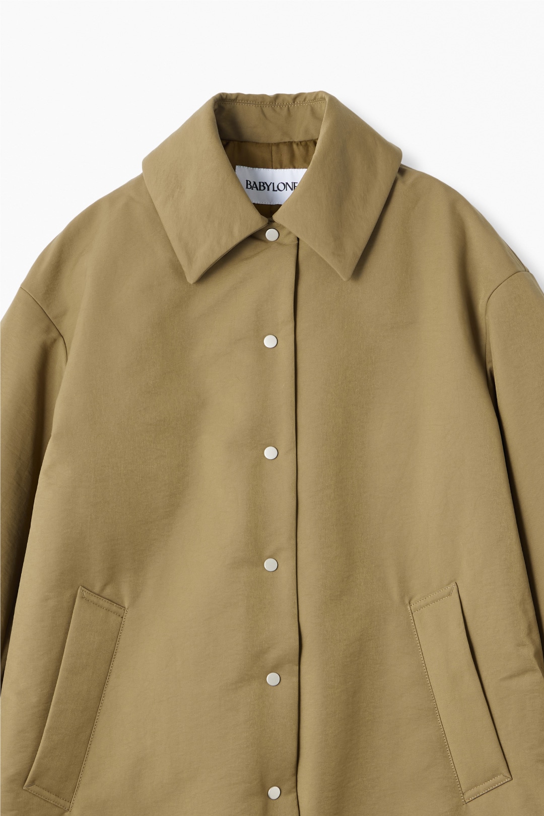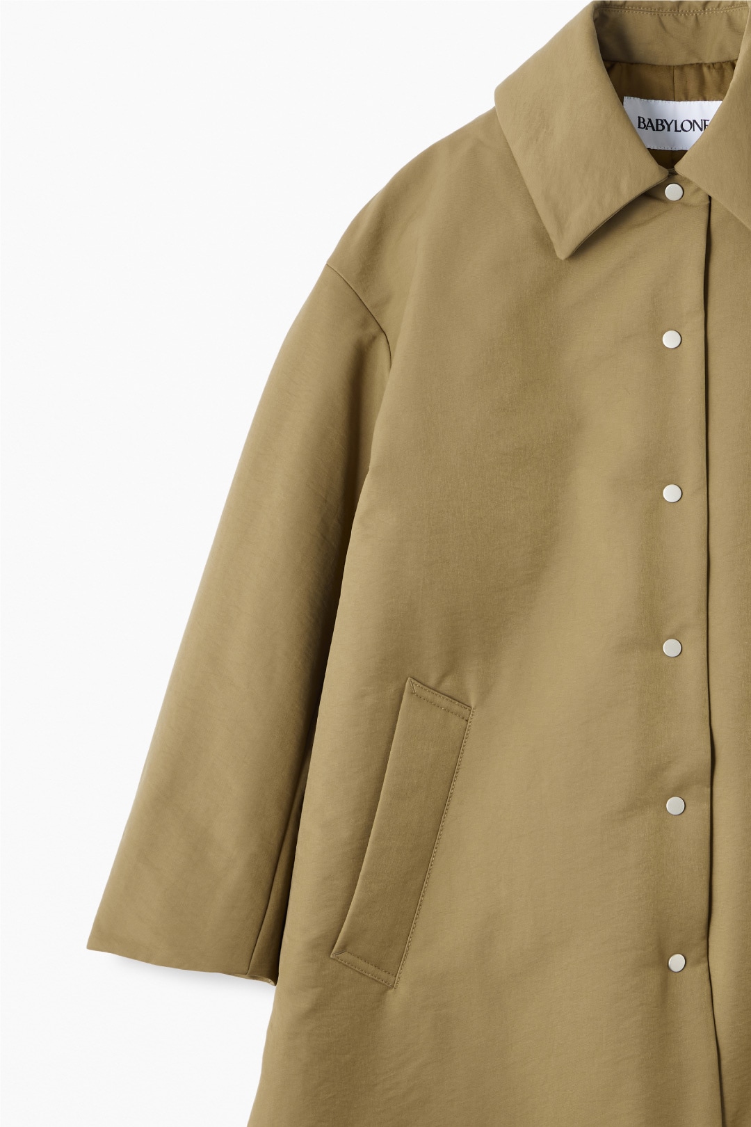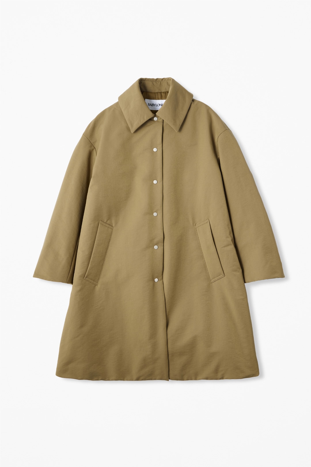 一般的な中綿より保温力に優れた「機能中綿」入りのフレアショートコート。 同じ厚さのダウンの2倍の暖かさがありながら、お手入れが楽なのが嬉しいポイント。前開きのメタルドットボタンでカジュアルになり過ぎない大人の中綿コートに。シワになりにくく、さらに撥水加工も備わった、頼れる一着。