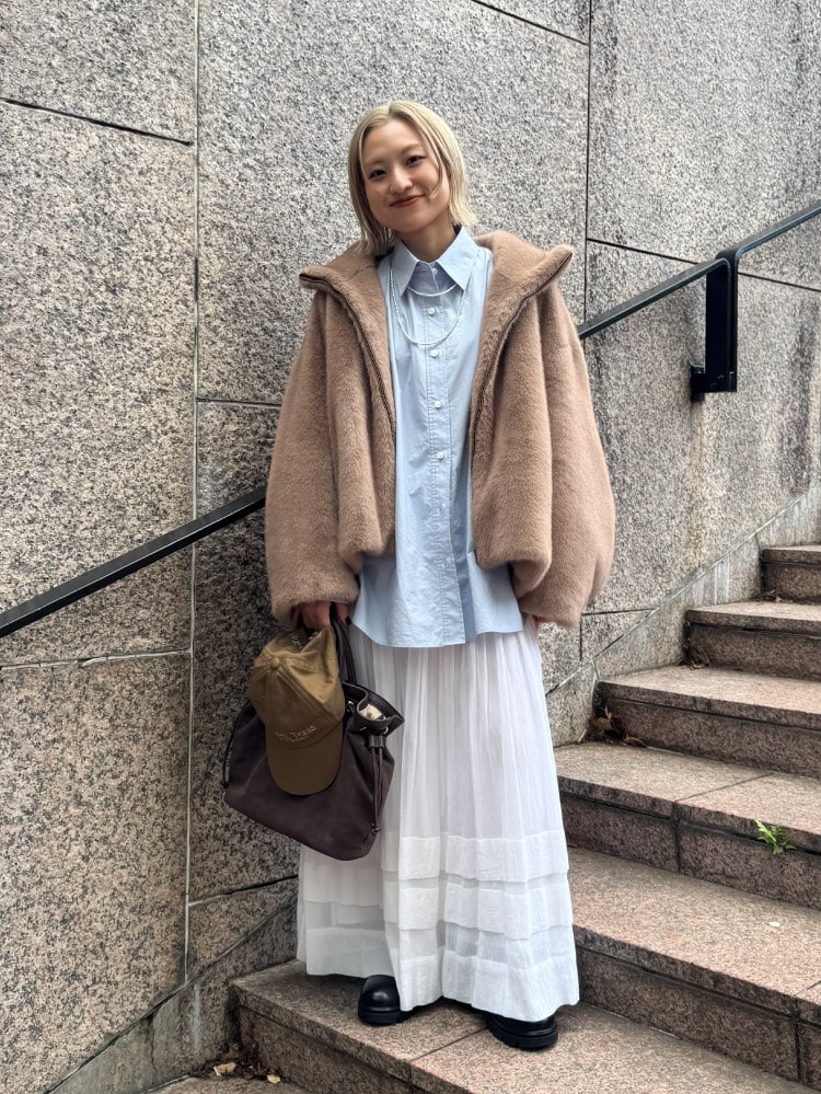 今年は一枚欲しいファーコート。ボリュームがあるのに計算されたシルエットだからこそ、着られてる感がでにくいです◎シャツ×スカートに羽織るだけで、今っぽくも都会的なコーデに仕上がります。