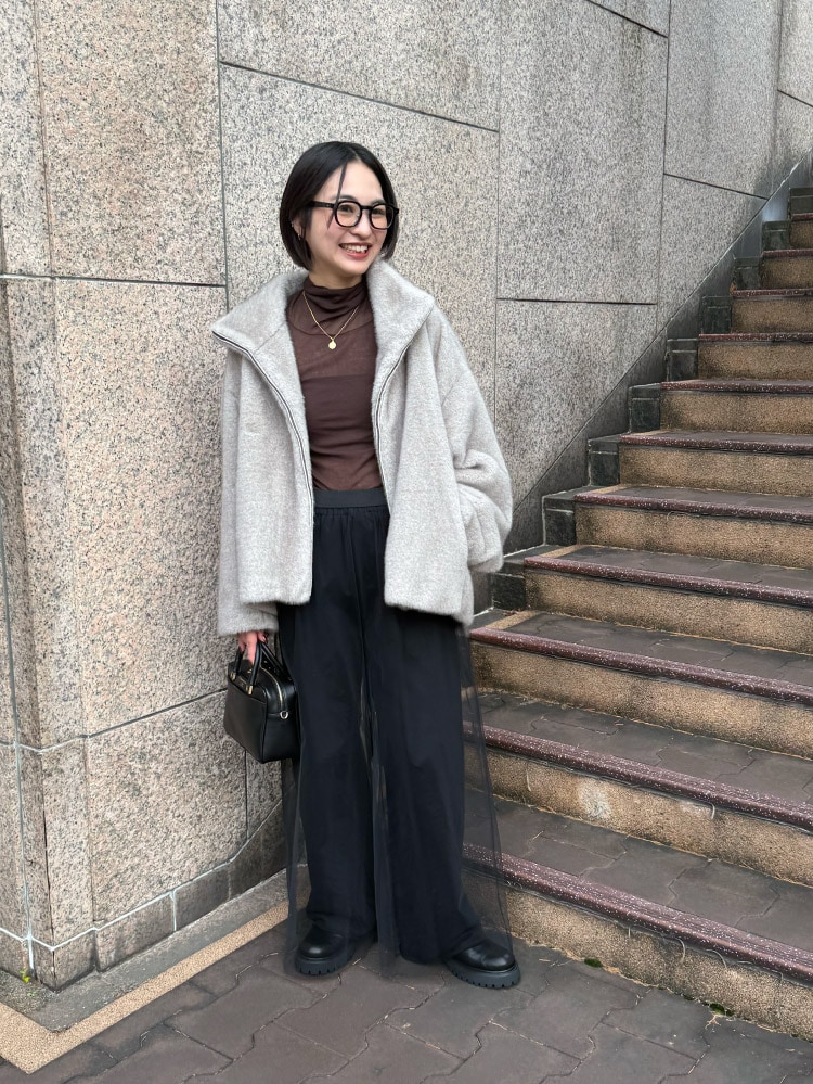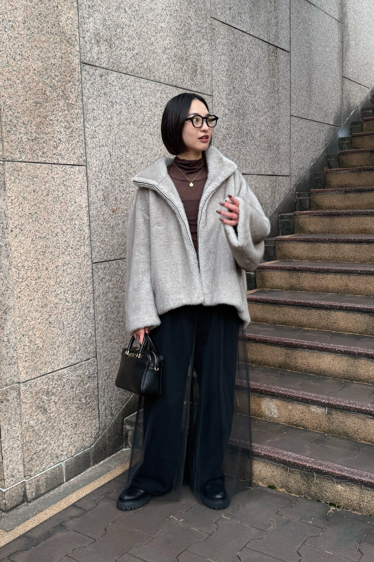 ボリューミーで暖かいファーブルゾンは毎年欲しくなるアイテム。バビロンのファーブルゾンは普段使いしやすいデザインでさっと羽織るだけでコーディネートが完成します。私は前を閉めたスタイリングも好みでした。