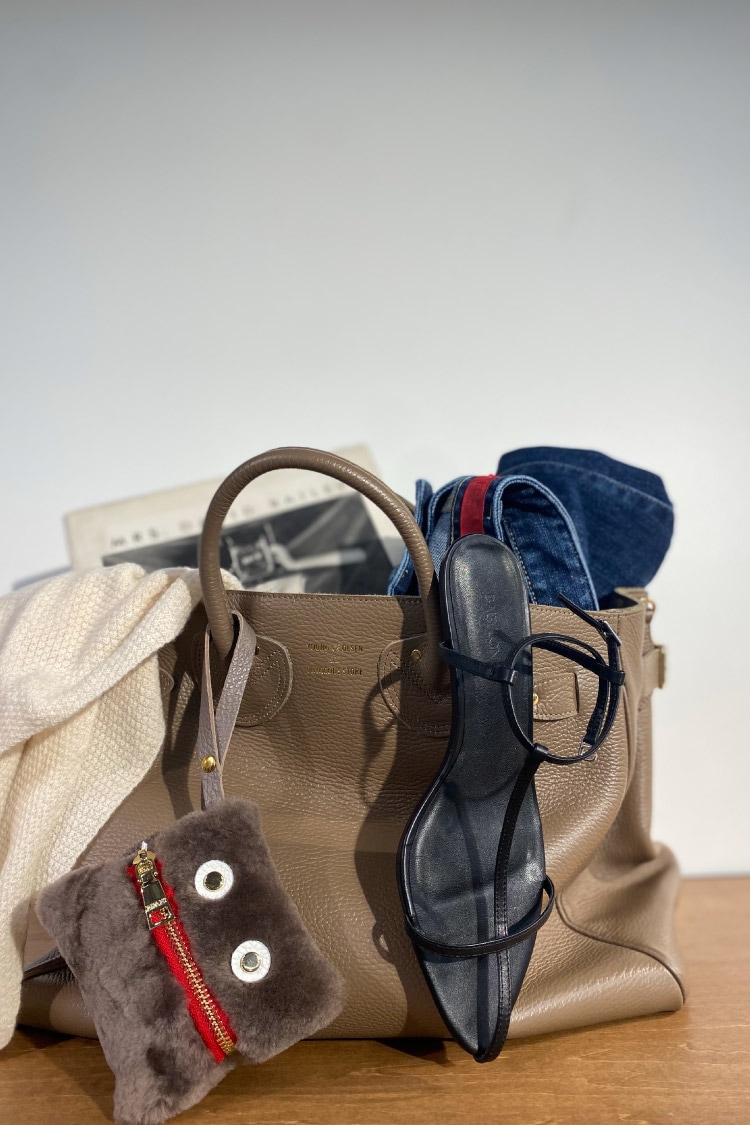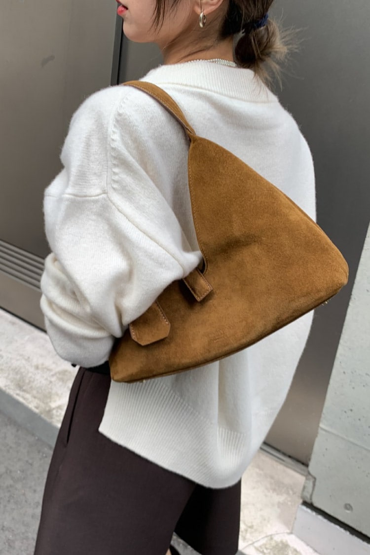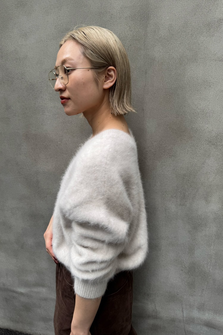 毛足の長いFOXカシミヤ素材は、甘くならないようにデニムでカジュアルダウン。トレンドのブラウンと合わせて、アクセントになる小物で遊んでみました。淡いトーンのコーデも、大人っぽい印象にしてくれます。