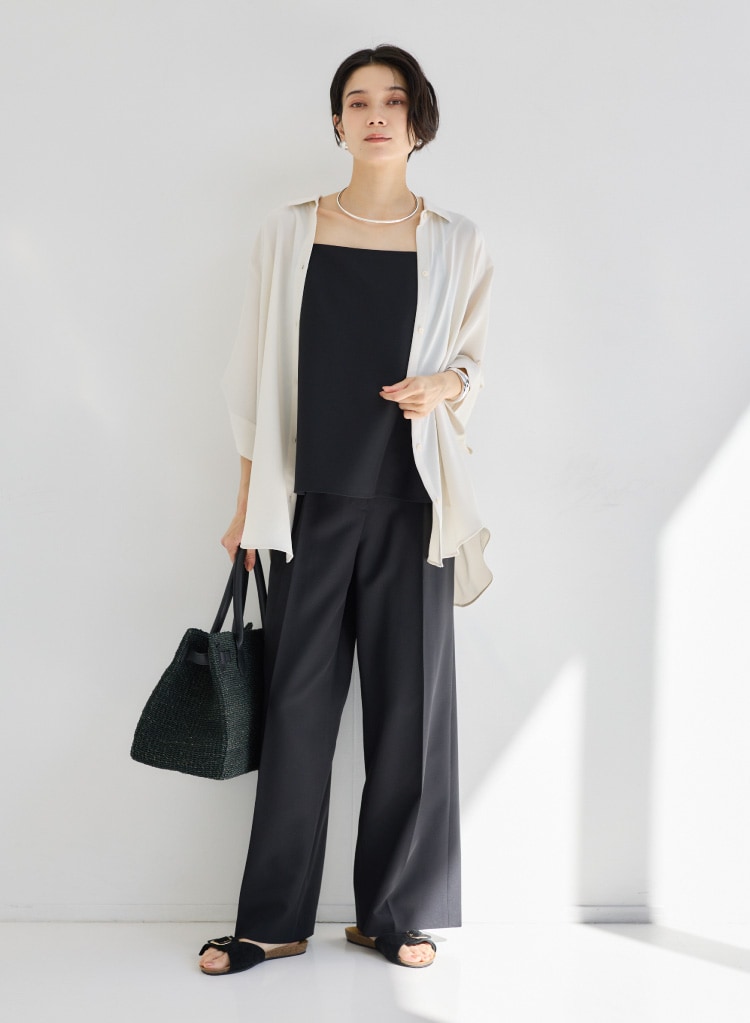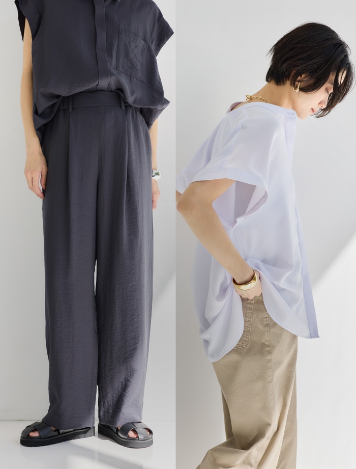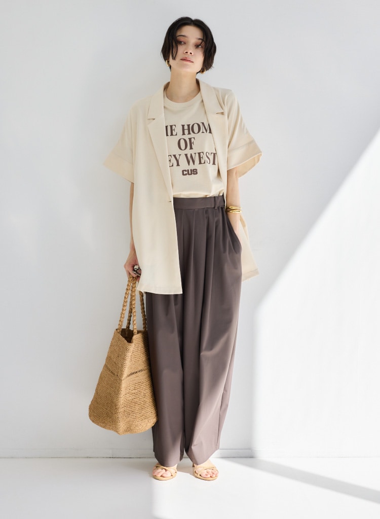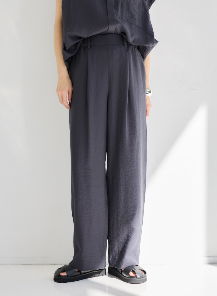 シルエットは1タックでスッキリ美脚。