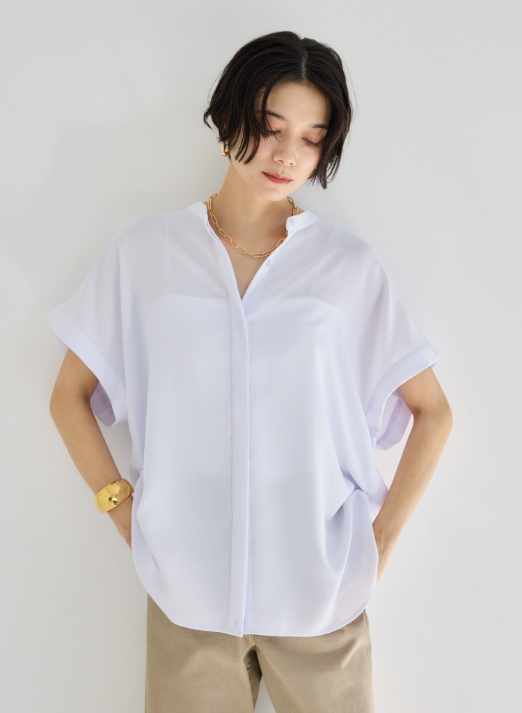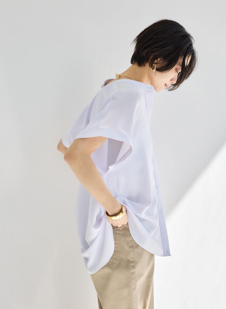 ポプリン裾タックシャツ