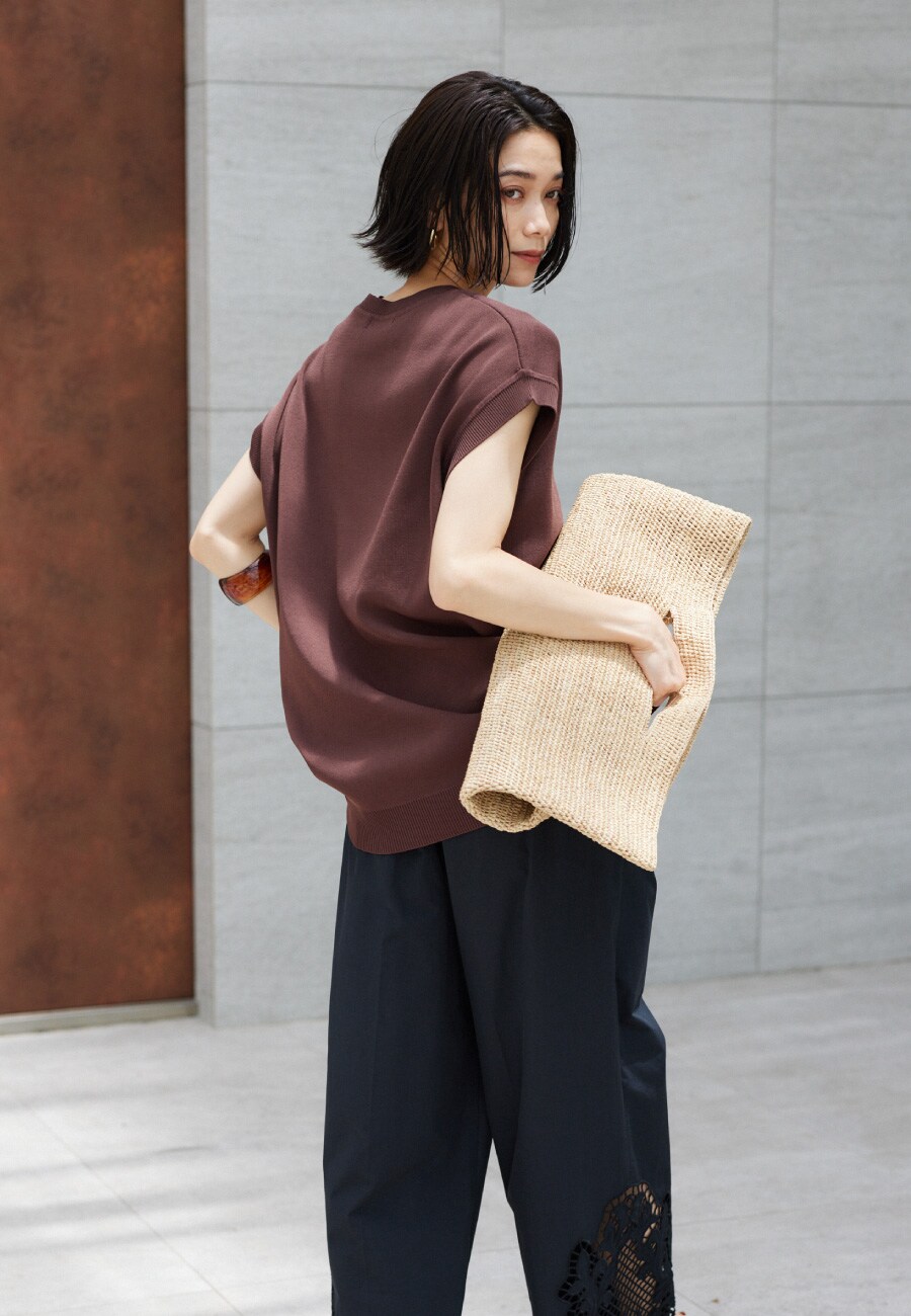 毎年好評のフレンチスリーブのニット。ゆったりめのシルエットで二の腕やヒップ周りのカバーも叶うデザイン。ニットでもハンドウォッシャブル可で気軽に手に取りやすく、カラー違いで持っていても間違いのないキレイめニット。