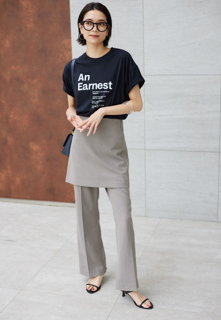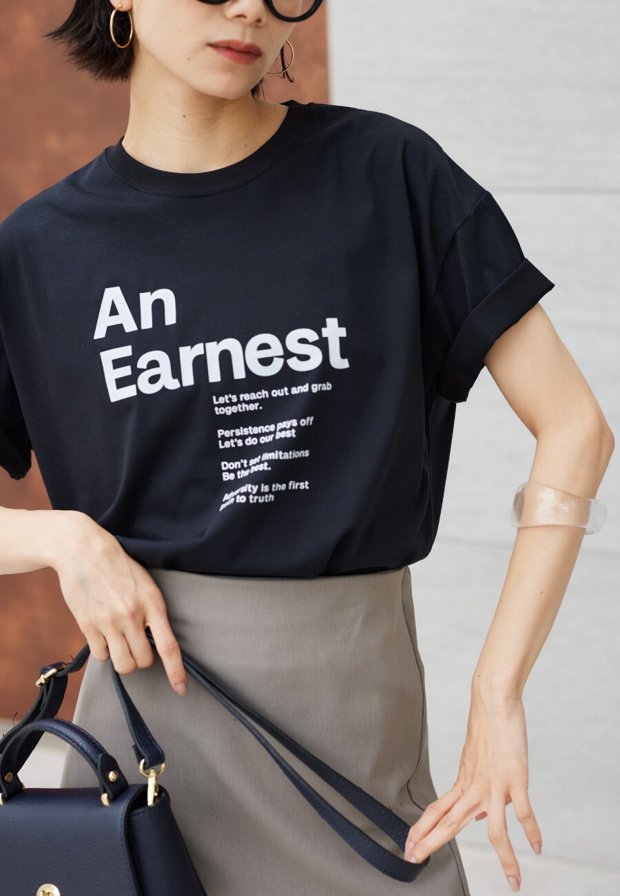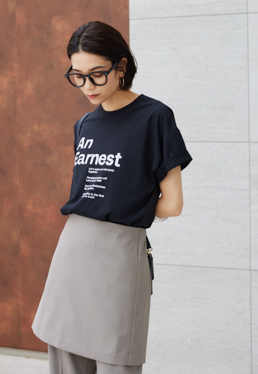 ロゴのバランスが絶妙なプリントT。袖を捲ったり、前インでこなれ感のある着こなしがおすすめ。綿とポリエステルのキレイめ素材でジャケットのインナーなどロングシーズンで活躍するアイテム。
