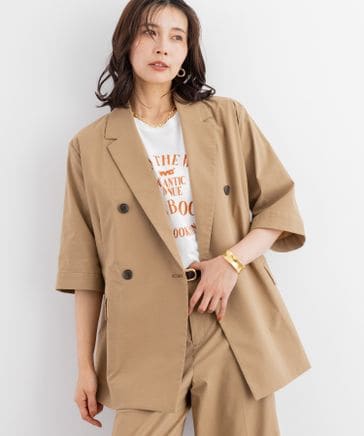 【先行予約】リネンストレッチハーフスリーブジャケット<セットアップ対応>