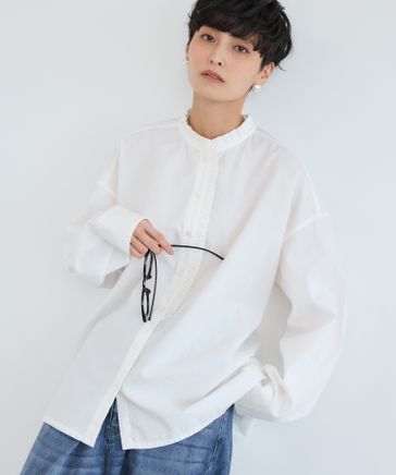 バンドカラーフリルシャツ / ハンドウォッシャブル