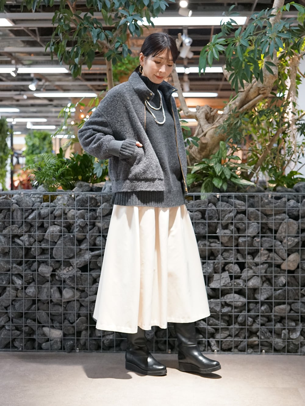 ショート丈のデザインは、ワイドパンツやフレアスカートなど幅広いボトムとの相性が◎