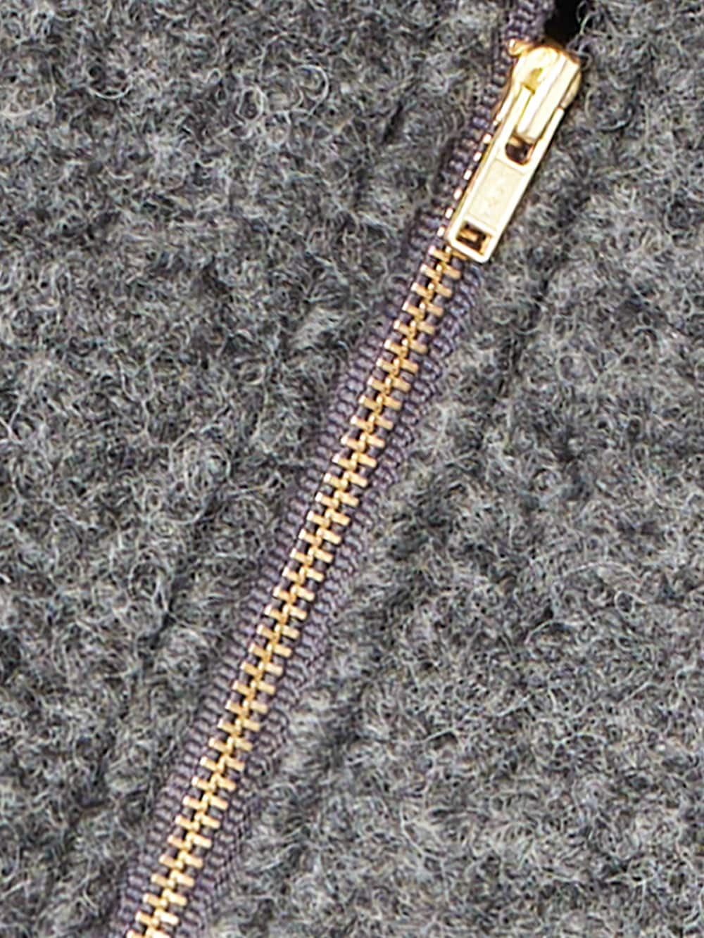 華奢なファスナーとスナップボタンがゴールドで、カジュアルな雰囲気に高級感をプラス