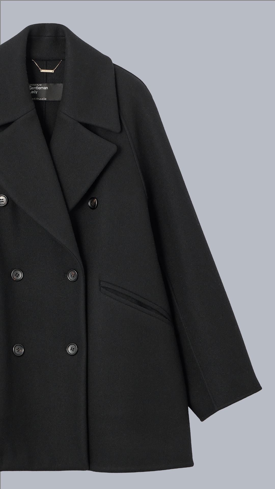 スタンドカラーなので首元が暖かい上に顔周りがすっきり見えて、上品でスマートな印象