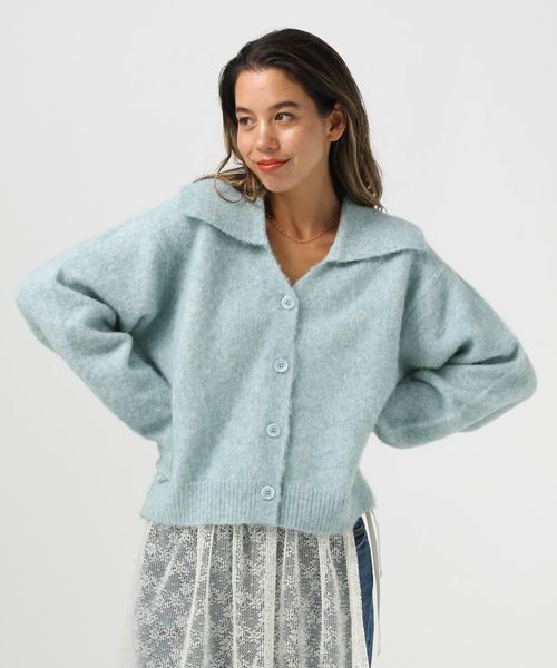 [トレンドデザイン]ウールミックスセーラーカーディガン