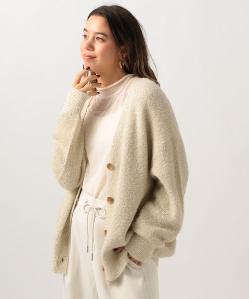 [春カラーで長く着られる]ラメフェザーニットカーディガン