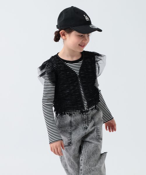 [別々に着用可☆]チュールベスト付きボーダーTシャツ(KIDS)