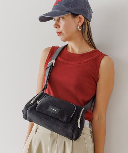 [軽量♪ペットボトルが入るサイズ感]パンチングマルチポケショルダーバッグ