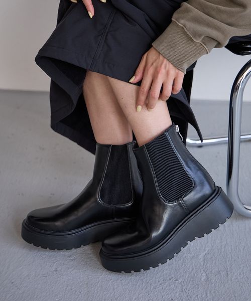 [ジップ付きで着脱楽ちん♪]バックZIPサイドゴアブーツ