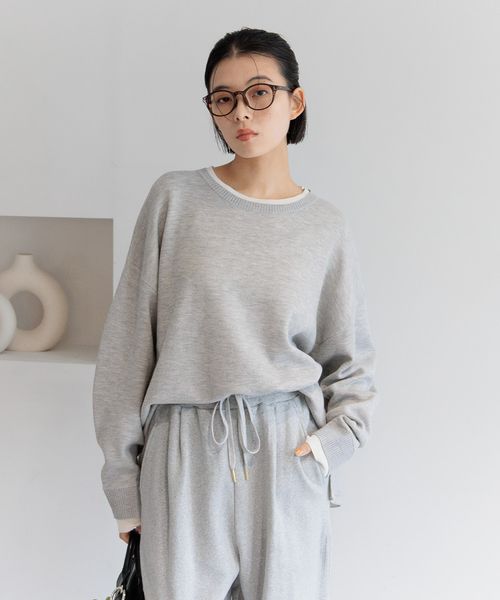[滑らかな肌ざわり]スウェットライクニットプルオーバー