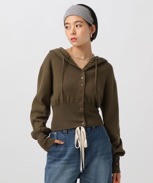 [スタイルアップ見え]リブニットパーカー